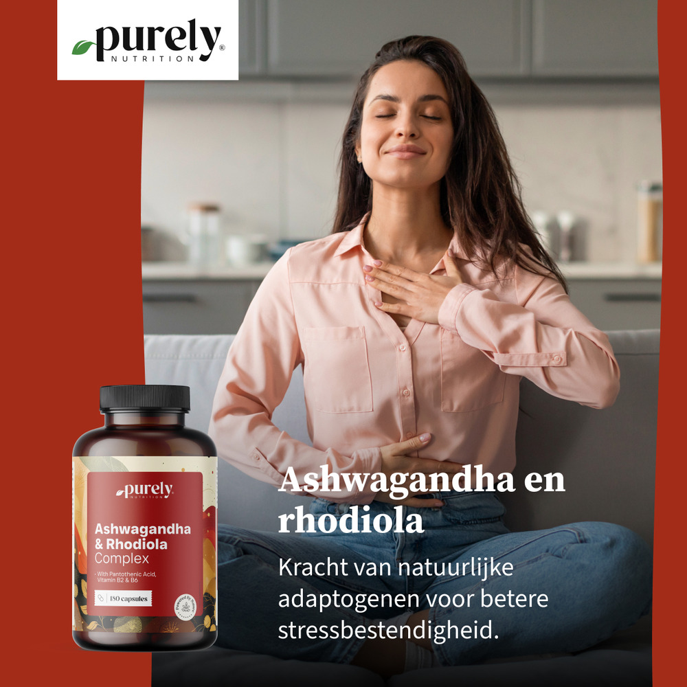 De krachtige synergie van ashwagandha en rozenwortel wordt ondersteund door de toevoeging van drie essentiële B-complex vitamines: riboflavine (vitamine B2), pantotheenzuur (vitamine B5) en pyridoxine (vitamine B6).