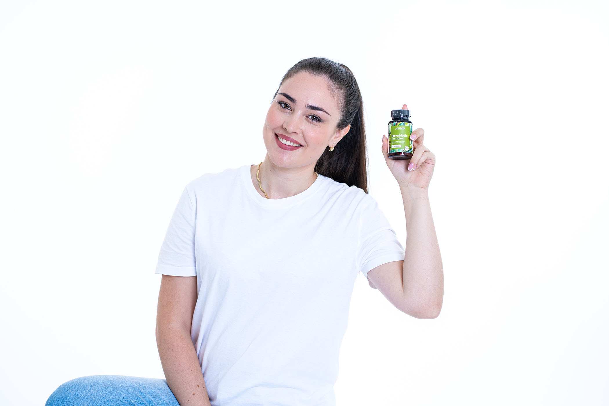 Ingrediënten: cellulose (vulstof), acaciavezels, hydroxypropylmethylcellulose (HPMC; plantaardige capsulewand), Saccharomyces boulardii, bamboe-extract (Bambusa bambos; jonge scheuten; getitreerd op 85 % silicium); Premix UP mix van 22 bacteriestammen 500 miljard/g (Bifidobacterium longum BL21, Lactobacillus plantarum N13, Lactobacillus reuteri SGL01, Lactobacillus acidophilus LA85, Bifidobacterium lactis BLa80, Lactobacillus rhamnosus LRa05, Lactobacillus crispatus 6272, Bifidobacterium bifidum BBi32, Lactobacillus casei LC89, Lactobacillus paracasei LC86, Bifidobacterium breve BBr60, Lactobacillus gasseri LG08, Lactobacillus lactis SGLc01, Lactobacillus brevis LB01, Lactobacillus salivarius LS97, Lactobacillus bulgaricus LB42, Bifidobacterium infantis BI45, Streptococcus thermophilus ST81, Lactobacillus helveticus LH76, Lactobacillus fermentum LF61, Bifidobacterium animalis BA12, Lactobacillus johnsonii LJ09), riboflavine (vitamine B2), pyridoxine (vitamine B6).