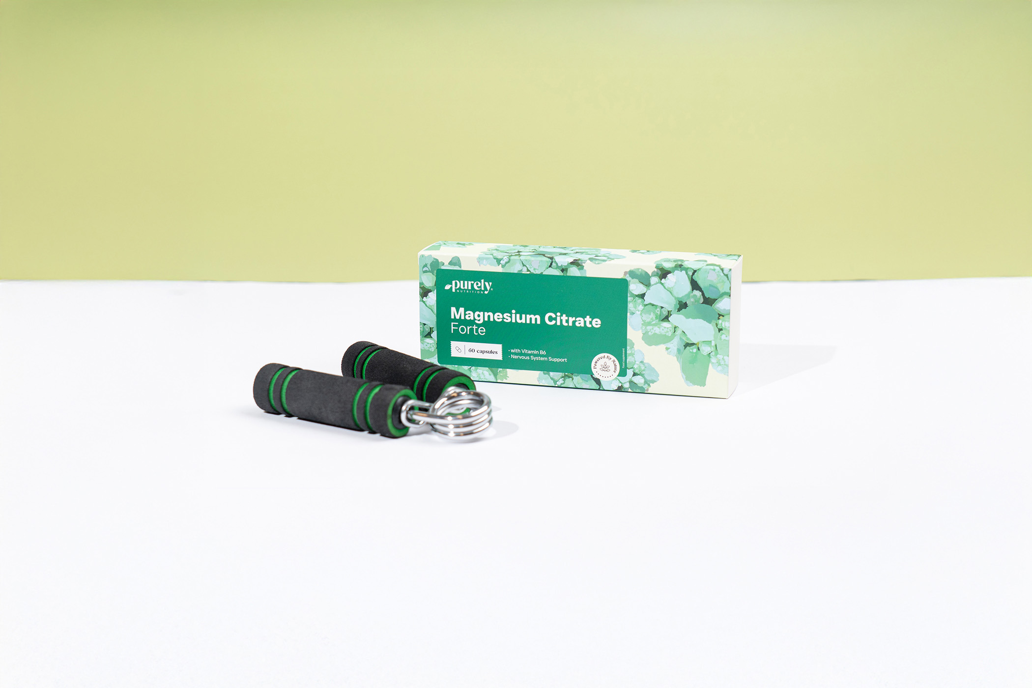 Ingrediënten: magnesiumzouten van citroenzuur, hydroxypropylmethylcellulose (HPMC; plantaardige capsuleomhulling), microkristallijne cellulose (vulstof), magnesiumzouten van vetzuren (antiklontermiddel), siliciumdioxide (antiklontermiddel), pyridoxinehydrochloride (vitamine B6), calciumcarbonaat (kleurstof).