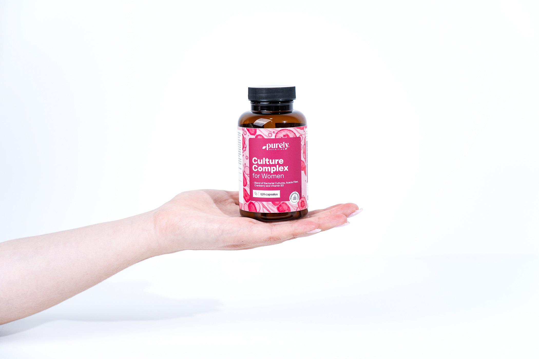 Cranberry-extract (Vaccinium macrocarpon) en vitamine B3 vullen het effect van de bacterieculturen uitstekend aan en ronden de formule af tot een evenwichtige en lichaamsvriendelijke ondersteuning.